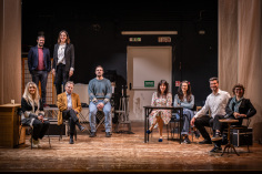 “Colpo di Scena” è un giallo ambientato in un teatro durante l’allestimento di uno spettacolo della compagnia che vi lavora.